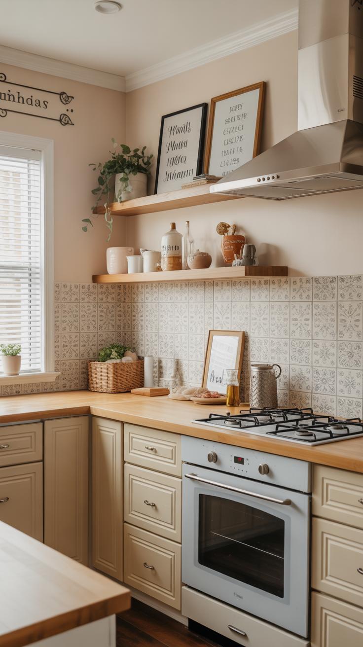 Add color where you can. A simple way to brighten the space is by switching out dish towels, placemats, or even a bold rug. You don’t need to repaint walls to make a difference; try incorporating colorful vases or bowls. Plants also make a subtle splash—herbs on the windowsill can give life and a bit of practicality at once.