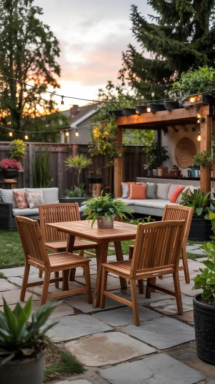 Lighting plays a vital role. String lights, lanterns, or solar-powered lamps can add warmth and extend usability after sunset. Adding small accents like outdoor rugs or colorful cushions can make the area inviting without much effort.