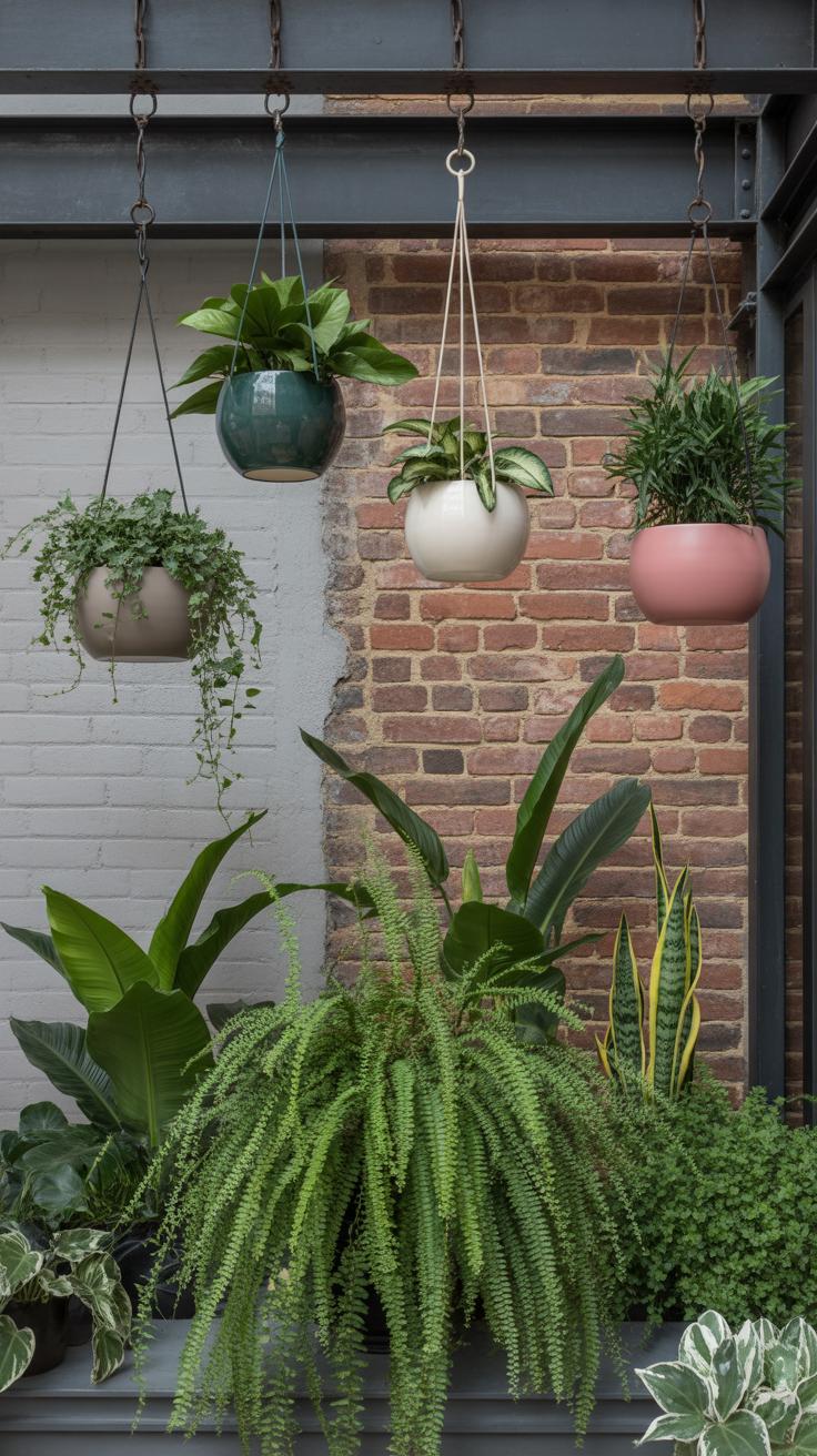 - Matching terracotta vessels layered with trailing plants add a natural, layered effect.