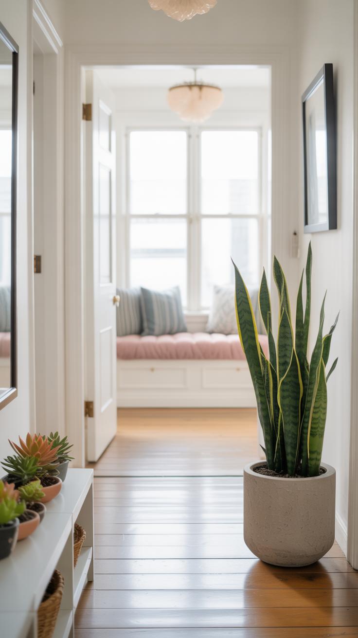 - Snake Plant: Known for absorbing toxins and producing oxygen even at night. It’s a low-maintenance choice that survives in dim corners.