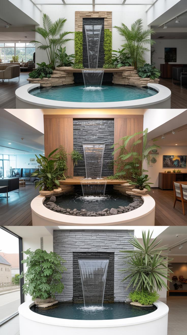 On the other end, large indoor waterfalls can become a dramatic part of your home’s design. Take, for example, wall-mounted waterfalls that stretch from floor to ceiling. These often incorporate natural stones or textured panels, where water cascades down in broad sheets or rivulets. Such installations require careful planning of water flow and sound control to avoid excess noise or splashing.