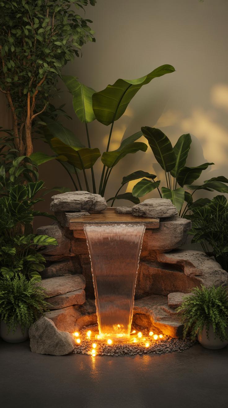 Lighting can make or break the mood around your indoor waterfall. You might try soft LED strips tucked behind rocks or under ledges to emphasize water movement. Color-changing lights offer flexibility—cool blues for calm evenings, warmer tones if you want a cozy feel. I once added a small spotlight angled to catch the water’s flow and noticed how it created subtle, dancing shadows on nearby walls. It wasn’t perfect, but it did add an unexpected layer of interest.