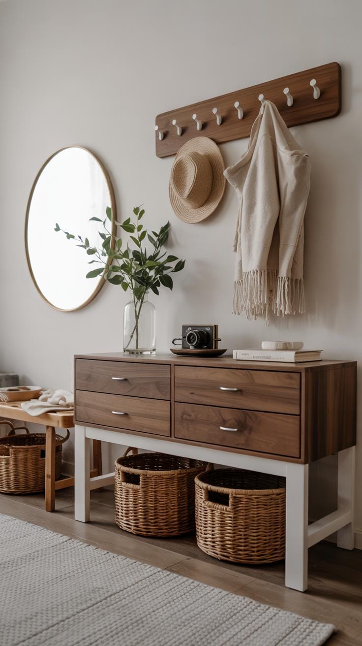 Look for furniture that serves more than one purpose. For instance, a bench with hidden storage below lets you sit down while keeping shoes or bags out of sight. This reduces clutter but keeps essentials nearby.
