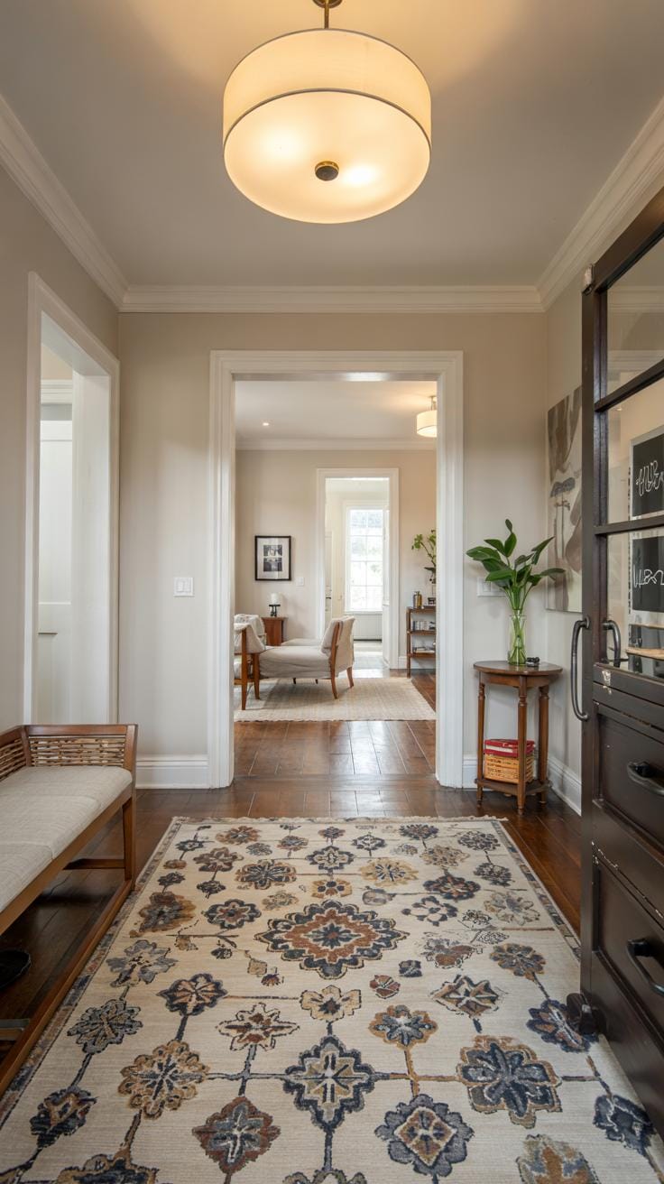 Textiles such as rugs and cushions bring warmth and texture underfoot and on benches or window seats. Choose a rug that fits the entrance size but remains easy to clean, using patterns or colors that harmonize with nearby rooms. Cushions can layer comfort and style, echoing your home’s palette.