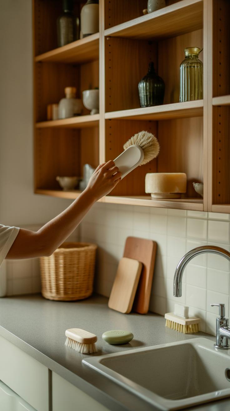 Keeping your Japandi kitchen feeling calm and warm means staying on top of small tasks every day. Try clearing countertops right after cooking—don’t leave dishes or utensils out longer than necessary. Wiping surfaces with a soft cloth and mild cleaner keeps natural materials looking fresh without extra effort.