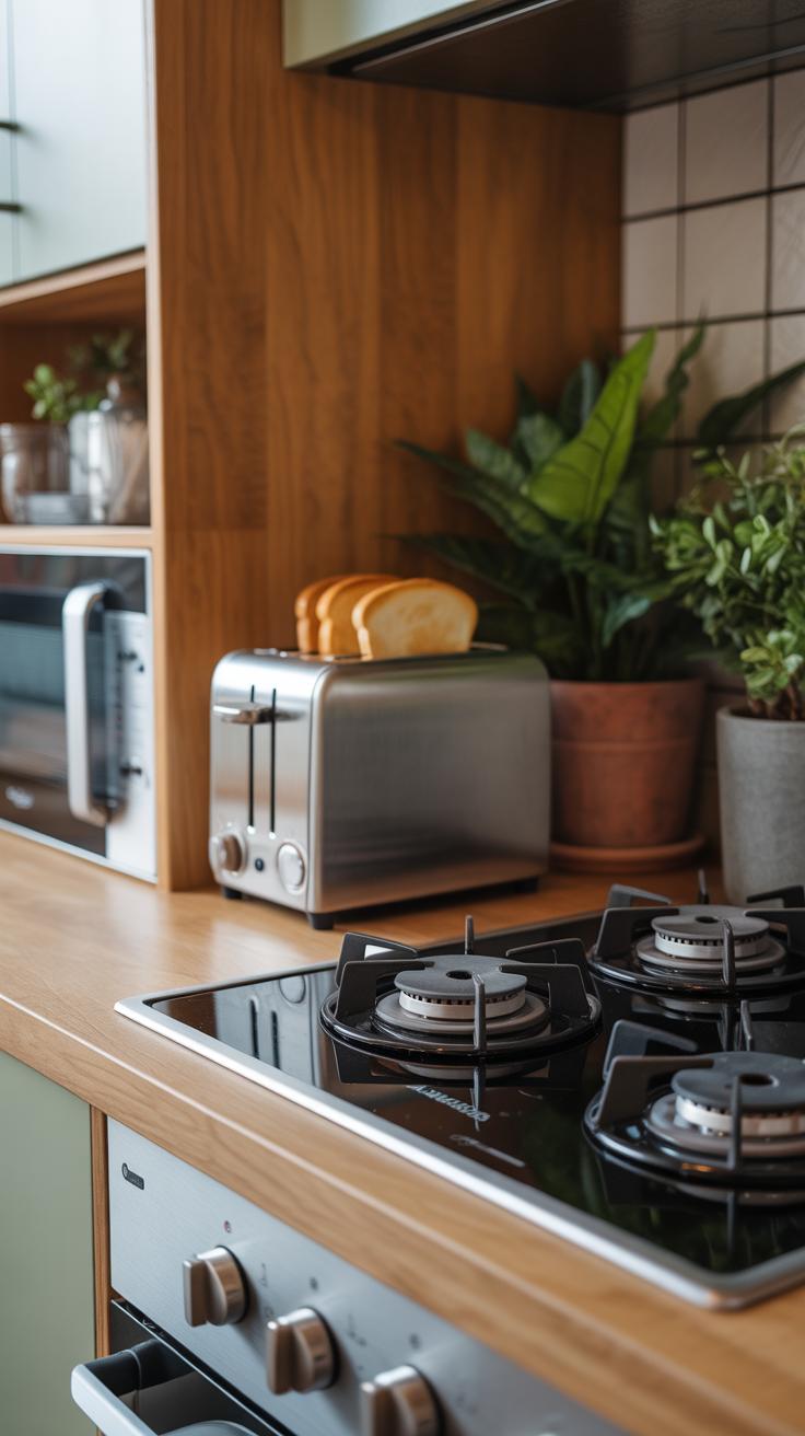 Sometimes, choosing smaller, compact appliances suits the style better too. They keep the countertop less cluttered and maintain that calm feeling you want in a Japandi kitchen.