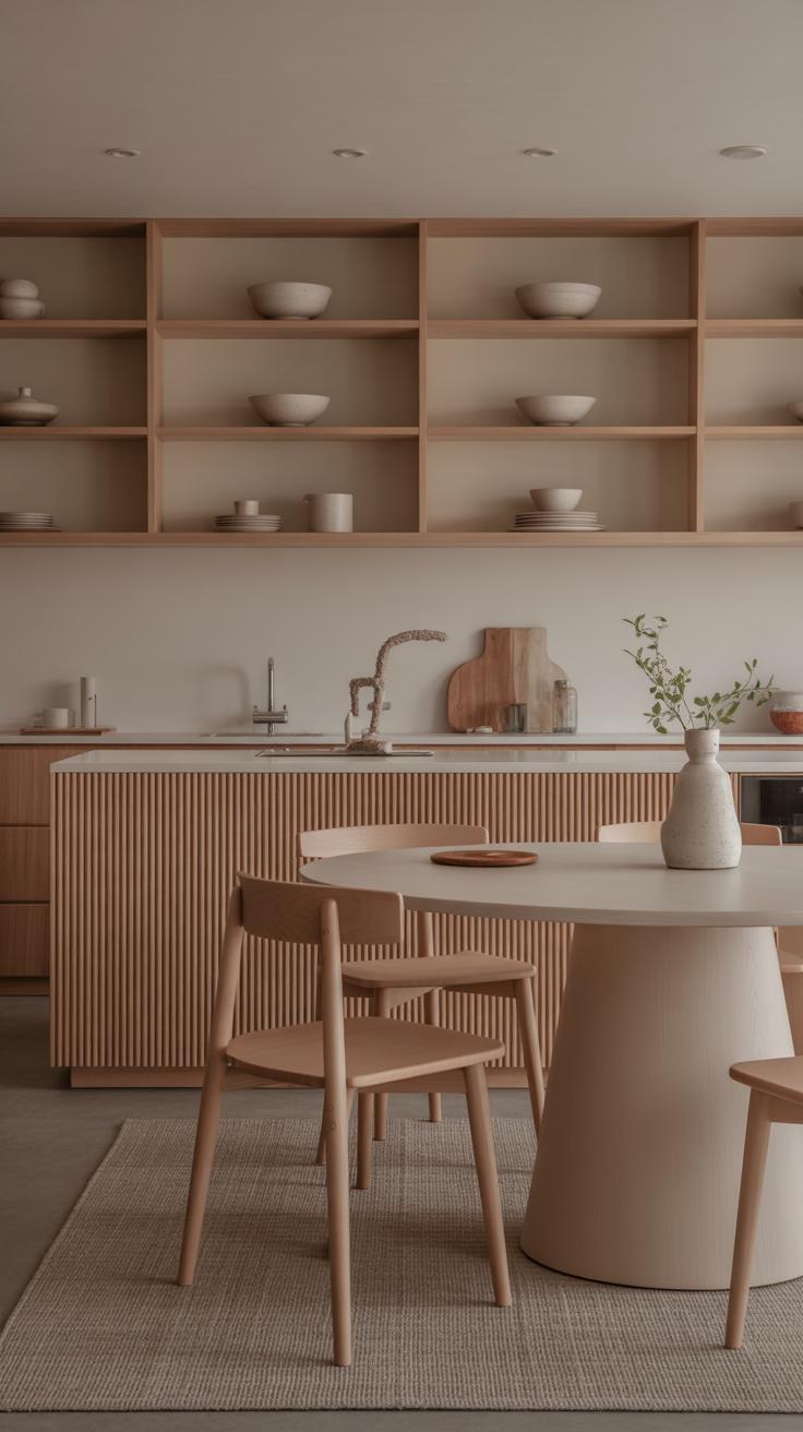 Furniture and fixtures follow simple forms. Imagine smooth cabinetry with subtle handles or open shelves that encourage quick access and neat storage. It all contributes to a kitchen where you might actually want to spend time, even when busy.