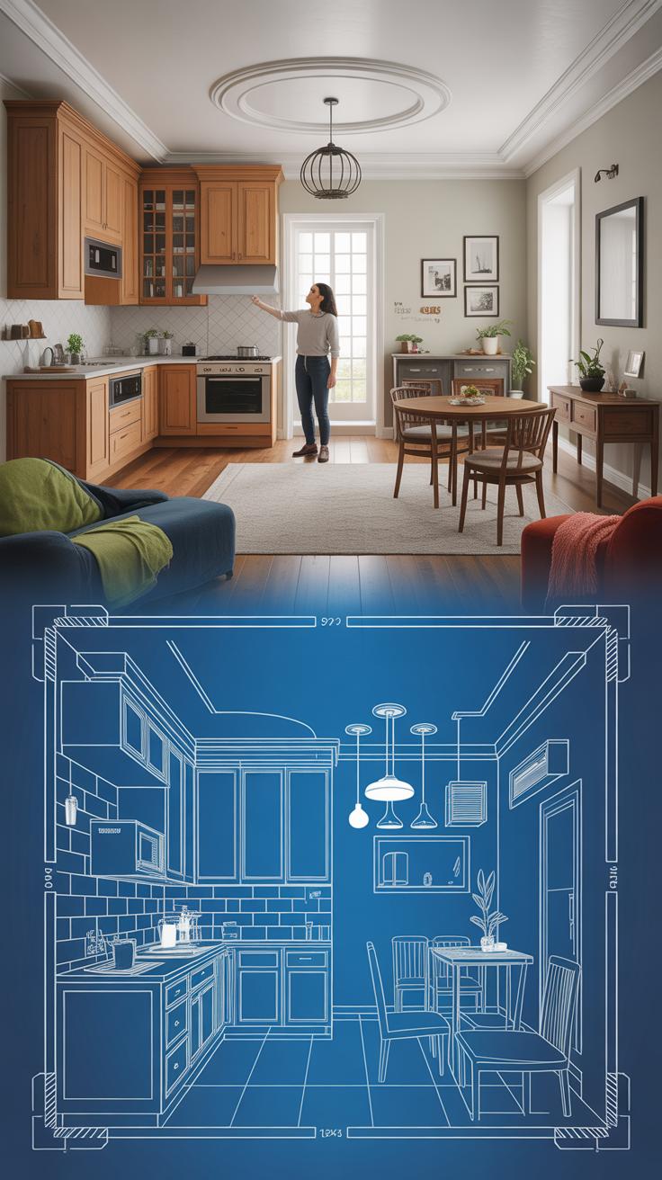 Shelves are another favorite. Picture a low, open shelf or a tall, slim unit acting as a partial divider without boxing you in. It holds cookbooks or pretty dishware but also blocks the view of stray appliances or dirty dishes waiting to be cleaned. And lighting changes, like dimmer switches or distinct fixture styles, help signal whether you’re in kitchen mode or relaxing in the living zone.