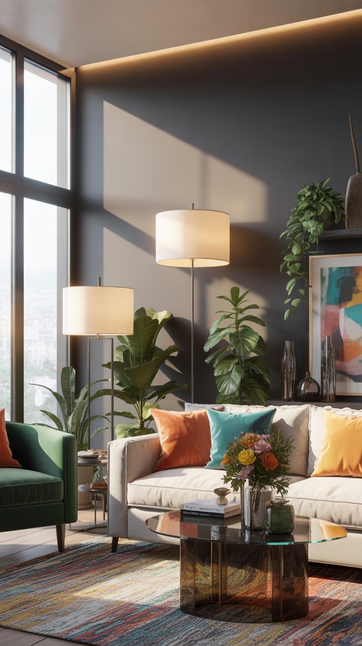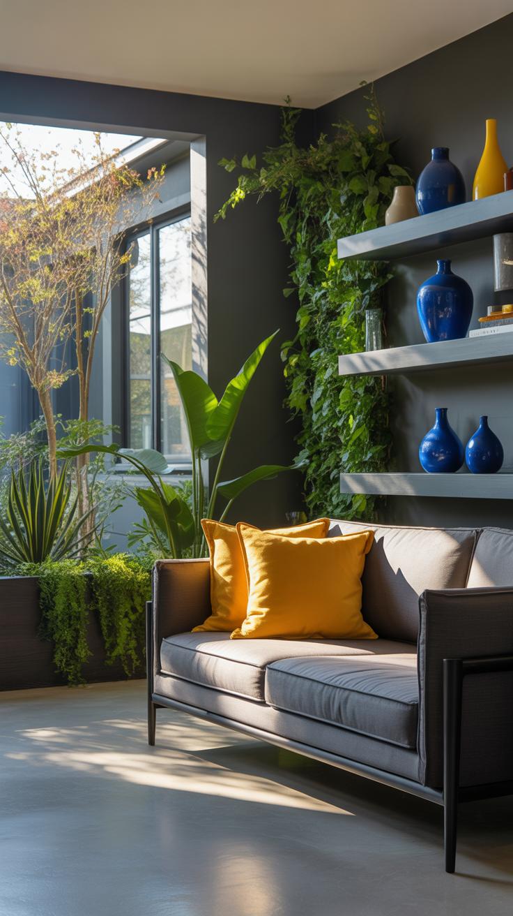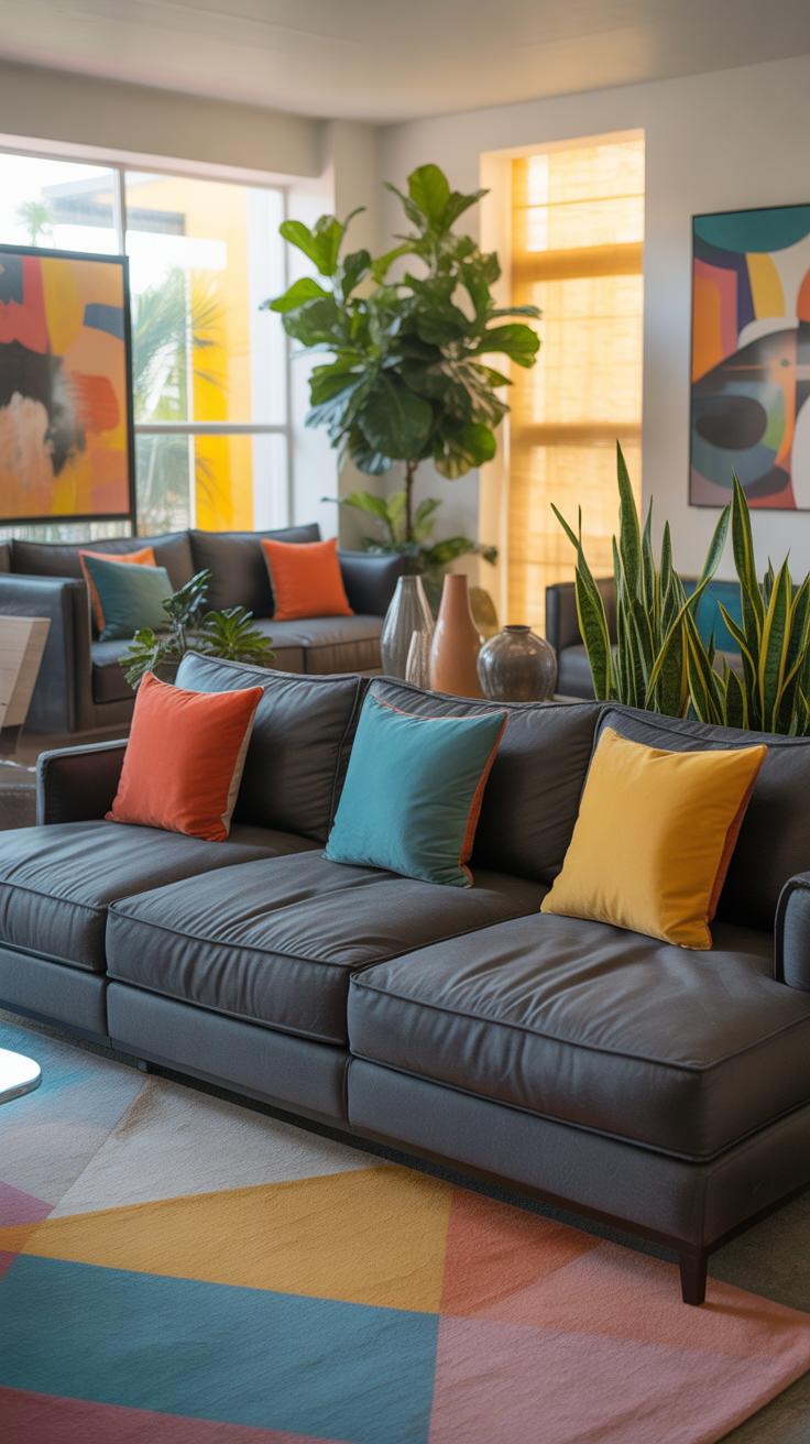 Grey can sometimes feel a bit cold or dull if it dominates a living room. To keep things lively, you might try mixing grey with other colors without letting grey take over completely. One easy way is to use contrasting tones that brighten up the space alongside grey. For example, partial pops of color can break up the monotony and add interest.