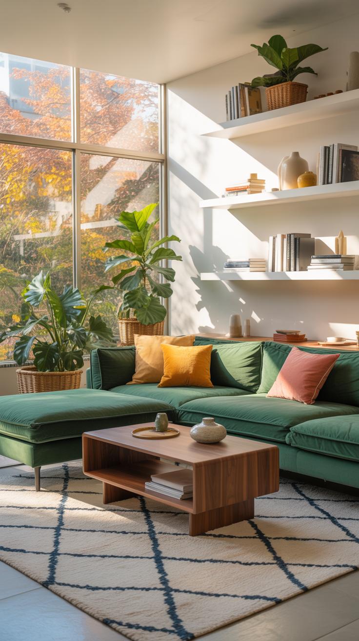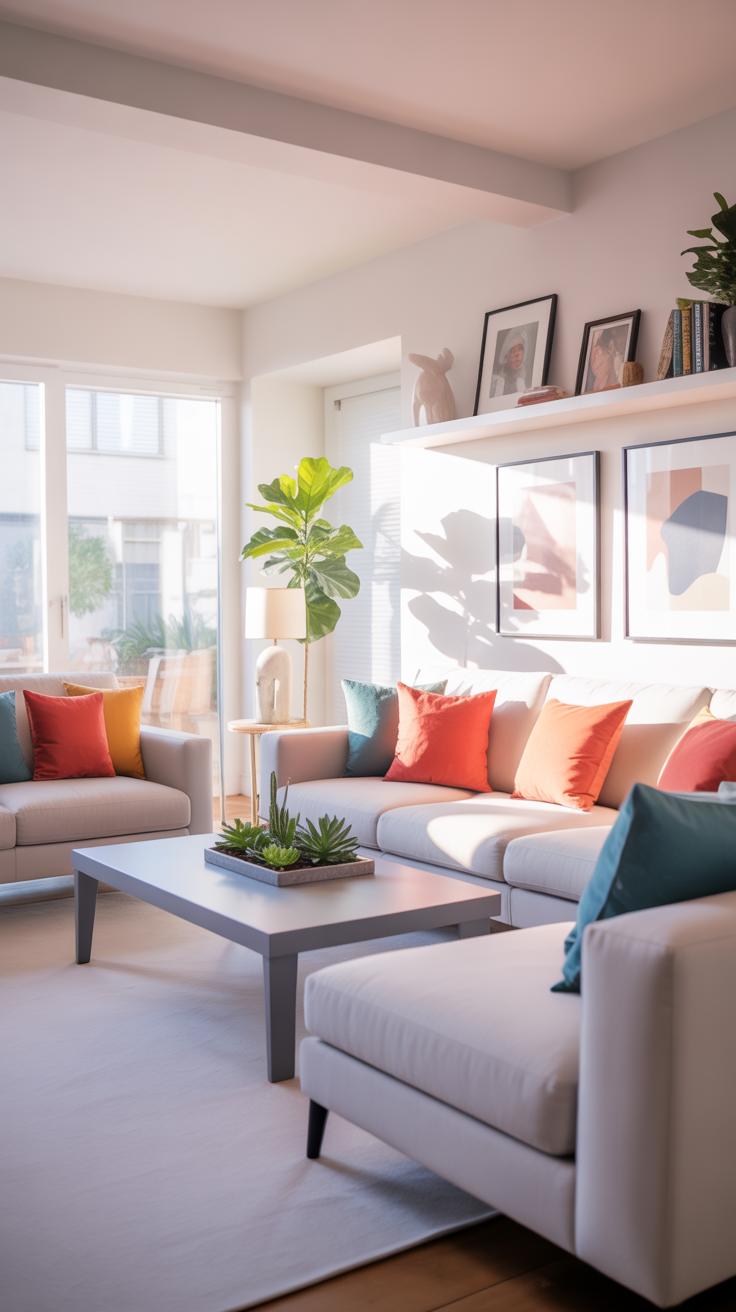 While a mostly light palette helps, a living room that’s all pale tones can feel a bit flat or sterile. That’s where subtle accents come in. Think of small pops—maybe a charcoal throw pillow, a soft black vase, or an olive green plant pot. These touches add depth without overwhelming the eye.