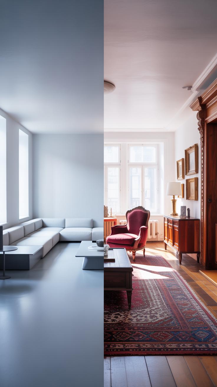 Minimalism emphasizes breathing room. The empty spaces between furniture invite your eyes to rest, giving a quiet, almost sparse impression. It feels modern, maybe even a bit stark if you’re used to cozy setups. Traditional rooms, with their detailed moldings, patterned fabrics, and layered textures, feel richer but demand more attention. Both styles grab your focus but differently—minimalism through simplicity, traditional through complexity. Depending on your mood or taste, one might feel welcoming while the other feels restrictive—or vice versa.