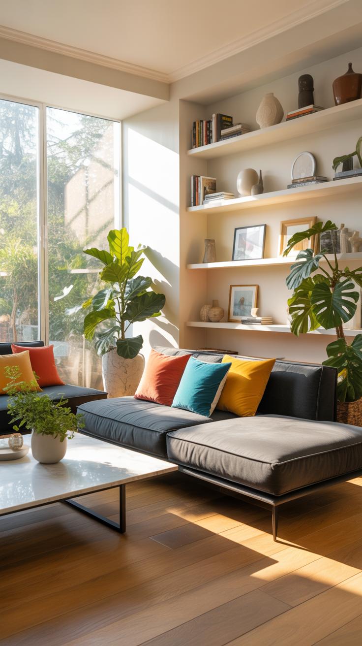 These subtle shifts refresh your room’s vibe and keep your style current without too much effort or expense. Ever noticed how a small touch like a new cushion cover can perk things up? It’s that easy to breathe new life into your living room.