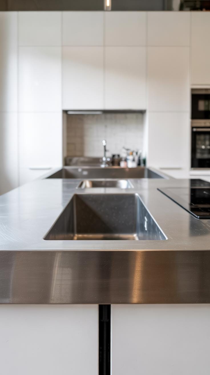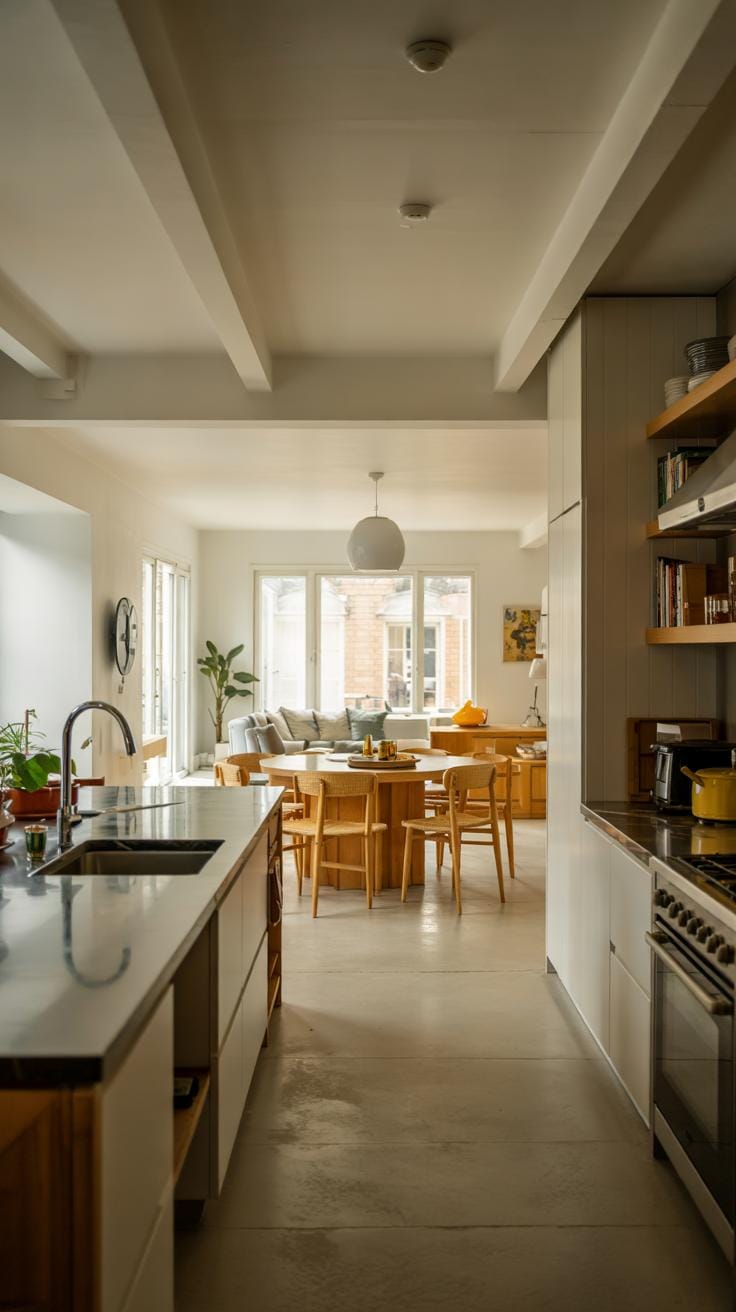 Natural materials like wood and stone add texture and warmth without overpowering the design. A simple wooden countertop offers a durable surface that feels grounding. Stone tiles or backsplashes provide subtle pattern and variation, keeping things interesting yet restrained.