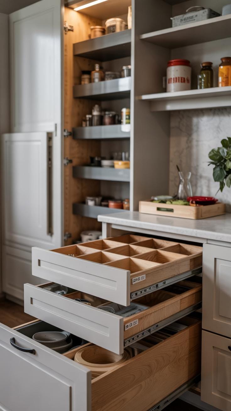 Using dividers inside drawers separates utensils and gadgets, making each tool easy to find. Adjustable shelves inside cabinets adapt to different sizes, letting you store tall and short items with less wasted space. Pull-out trays bring pans or ingredients to you, instead of making you dig around.