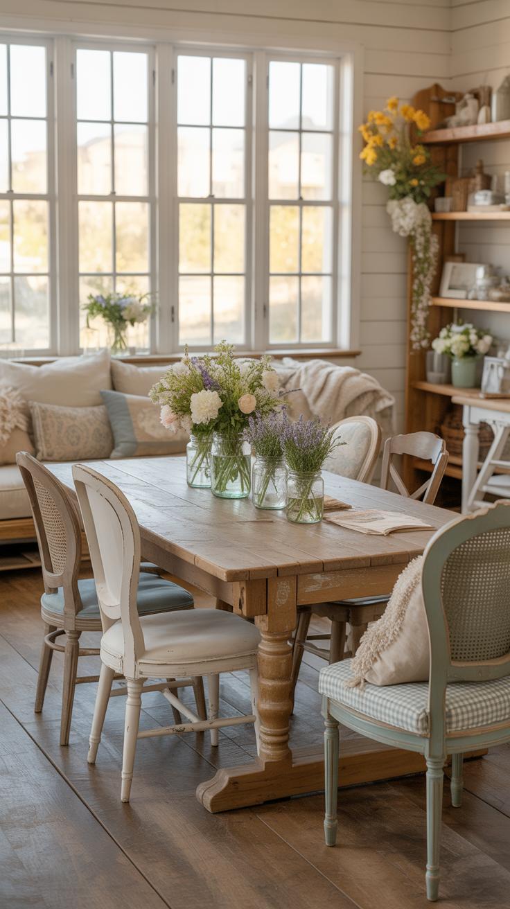You don’t have to match everything perfectly; a slightly mismatched look tends to feel more authentic in farmhouse style. Plus, different seating types accommodate different preferences and uses—some want to sink into a plush seat, others might prefer a firmer wooden chair. It’s about creating a space where everyone can find a spot that suits their mood.