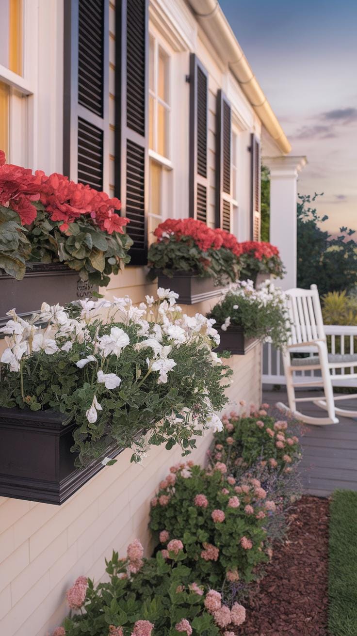 Your home’s exterior becomes truly inviting with thoughtful accessories. Window boxes filled with bright flowers or greenery create a welcoming, lived-in feel while adding pops of color. Pair these with shutters painted in colors that complement your house for balanced contrast and texture.