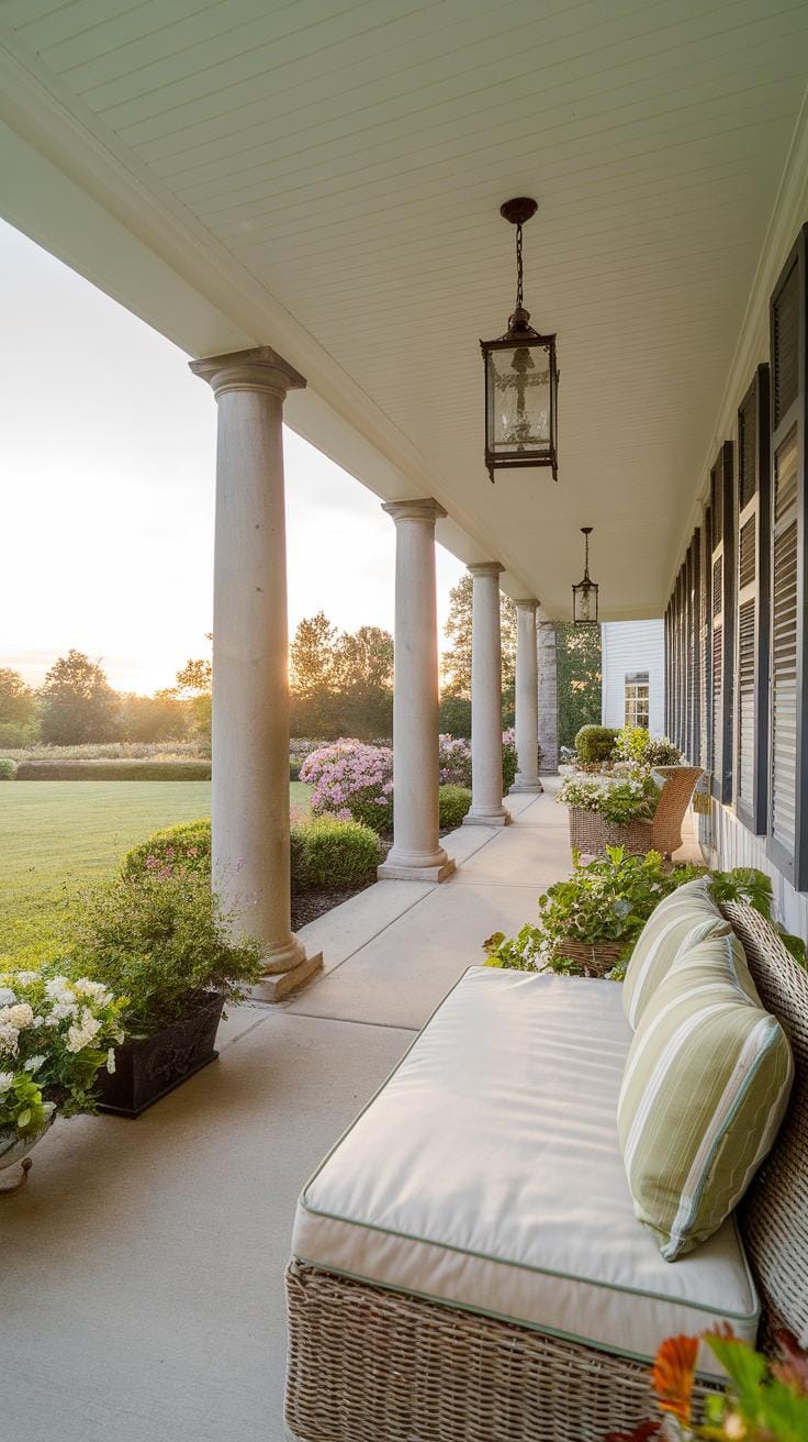 Comfort boosts the use of your porch. Installing ceiling fans helps keep air moving during hot days, making the space more enjoyable. Soft lighting, such as hanging lanterns or sconces, sets a cozy mood in the evenings. Selecting furniture that combines style and durability matters; opt for weather-resistant cushions and tables that invite casual conversation.