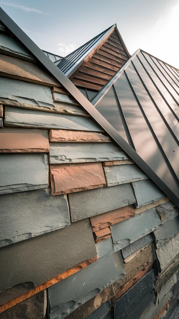 Metal roofs offer durability and a sleek, contemporary edge. Their smooth surfaces contrast nicely with wood siding and bring subtle shine to the exterior.