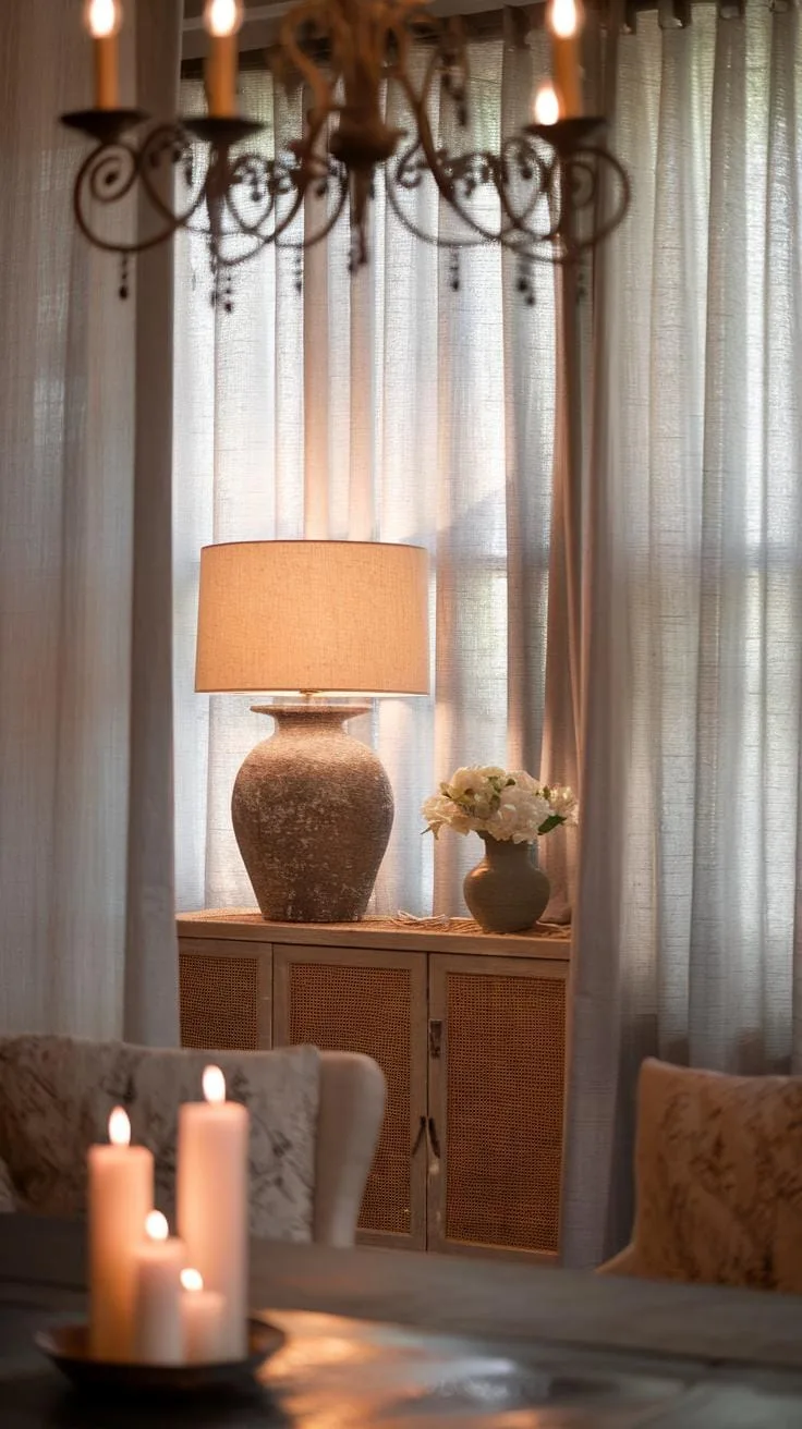 Natural light brings energy and freshness, while softer light adds comfort for evenings. Position your lighting to highlight areas where you gather or display your decorative accents, like ceramics or vintage pieces.