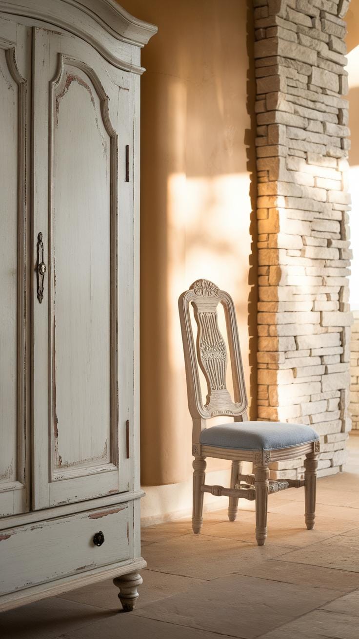 Think about materials carefully. Distressed woods add warmth and a tactile quality that fits the French country mood. Combine these with soft fabrics such as linen or cotton for upholstery. These materials breathe, feel pleasant to the touch, and age well over time.
