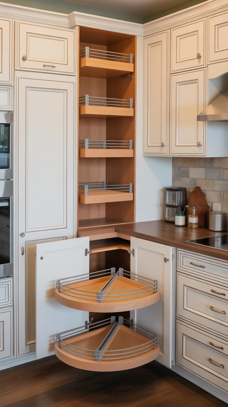Corner cabinets often get overlooked, yet they hold potential that’s easy to miss. A lazy Susan or swing-out shelves inside these corners let you use those awkward spaces without creating clutter. It’s tricky, though—sometimes they don’t open wide enough, or it’s hard to fit large items. Still, a bit of planning can turn corners into storage gold.