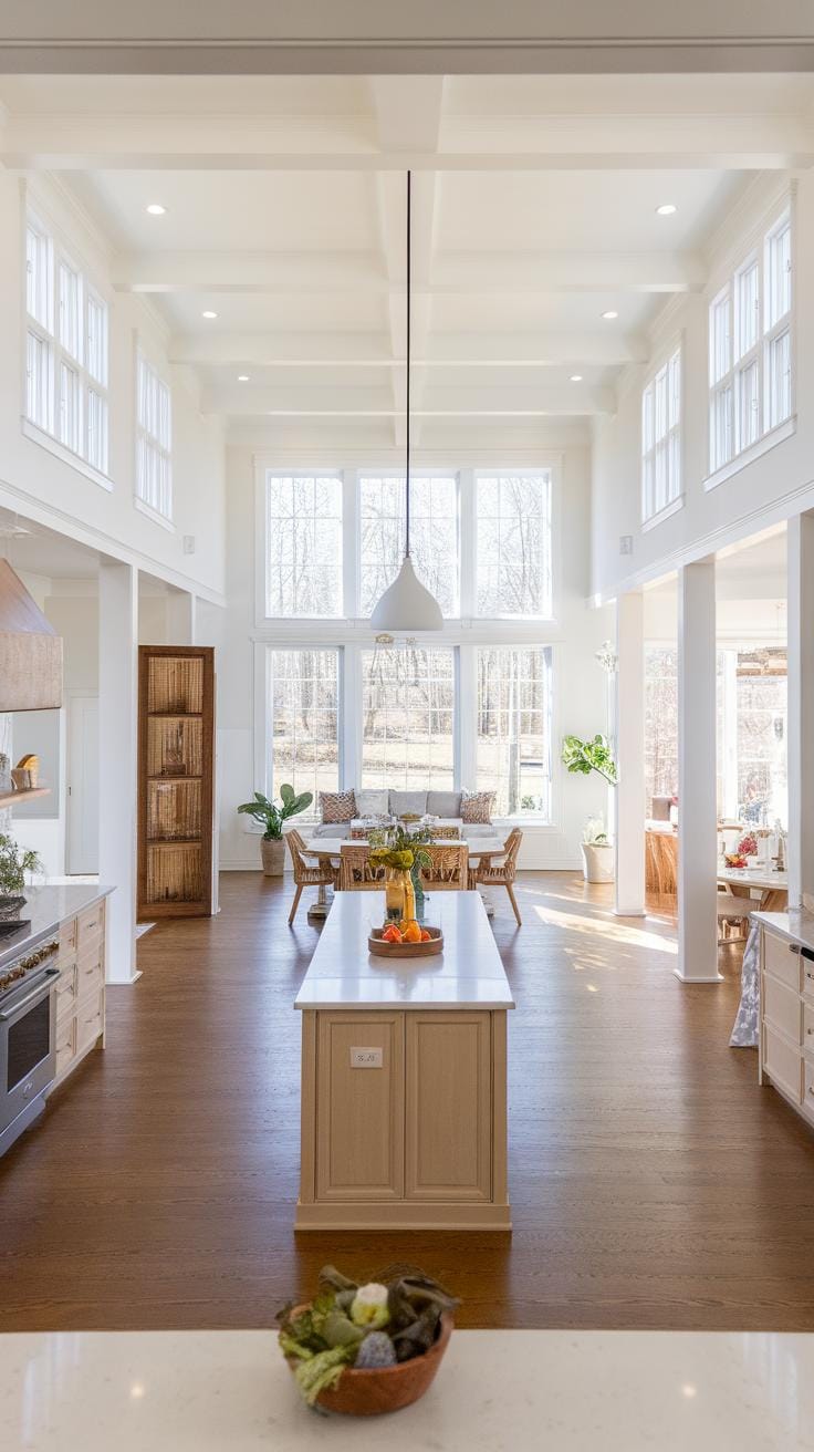 You can improve daily living by adding smart storage options that blend into your home. Built-in benches with storage below or kitchen islands with drawers save space while keeping essentials handy. These solutions prevent clutter from taking over wide-open rooms.