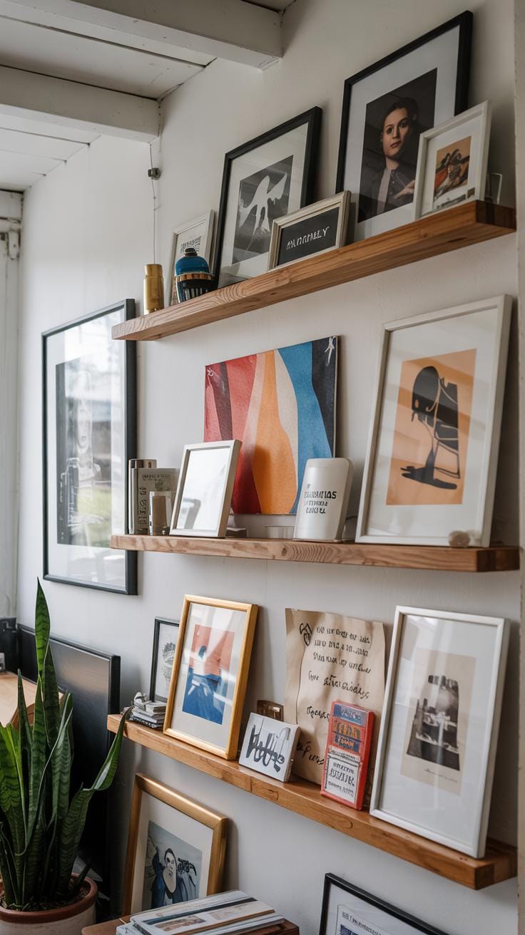 Group pieces by theme or color to create harmony. Arrange smaller artworks together for a gallery wall effect that feels balanced, not cluttered. Use consistent spacing between frames, about 2 to 4 inches, to keep the display neat and cohesive.