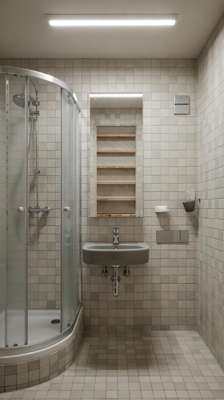 Wet baths place the shower, toilet, and basin together in one watertight room. The entire bathroom can get wet during a shower, so all surfaces need waterproof materials like tiles or waterproof panels. This setup cuts down on walls and fixtures, saving room.