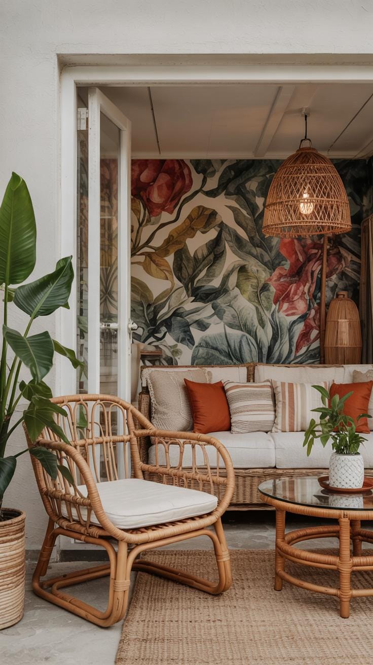 Cane, rattan, and bamboo bring both comfort and strength to a modern tropical space. These materials have a light visual weight and offer durability against humid climates. Using a rattan chair or bamboo coffee table can instantly add warmth without overpowering your room.