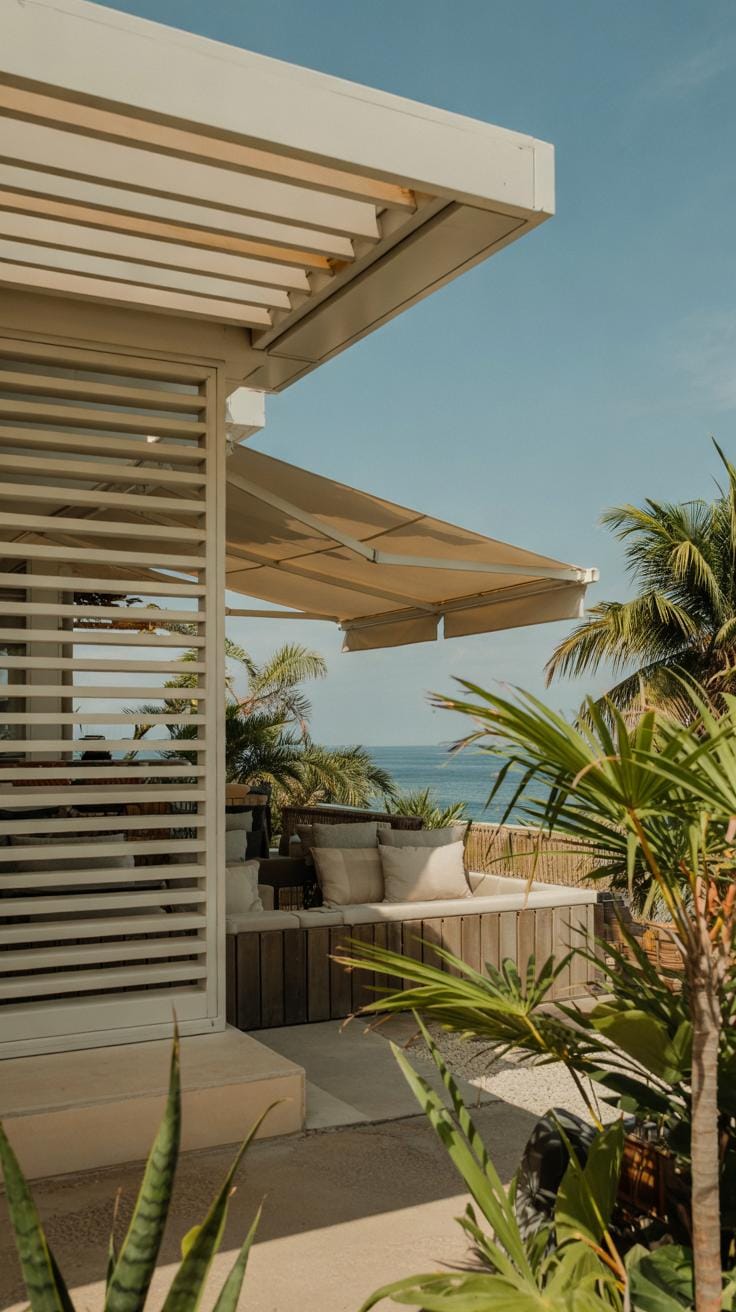Choosing the right angle and spacing for louvers is key. Closer louvers offer more shade but less light, while wider gaps bring in more daylight with limited heat. Both overhangs and louvers fit modern tropical styles and offer a clean look.