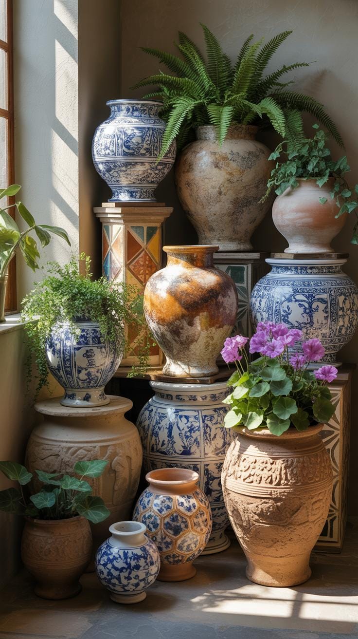 Antique ceramics and salvaged containers transform narrative plant decor into tangible storytelling. When you select a weathered terracotta pot from a centuries-old pottery tradition or repurpose a vintage urn, you’re introducing genuine historical context into your living room. These vessels carry the patina of time, the fingerprints of artisans long past, and the accumulated memories of previous owners. Each crack, discoloration, and worn edge becomes part of your plant’s narrative, layering botanical life with human history in ways contemporary pieces cannot replicate.