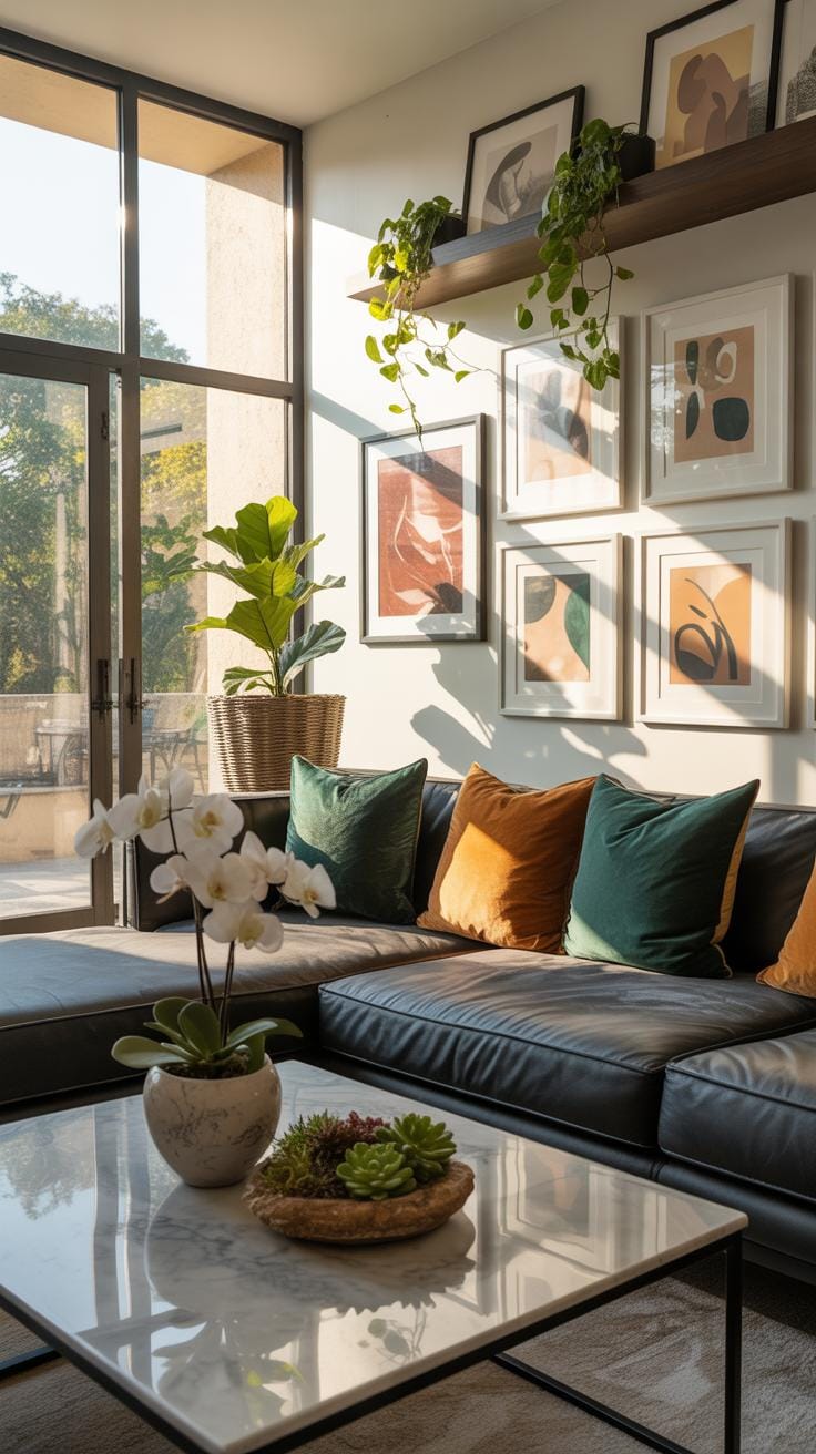 This curated collection becomes more than decoration—it transforms into a living focal point that grounds your entire room’s aesthetic narrative, inviting viewers to linger and appreciate the thoughtful botanical storytelling woven throughout your space.