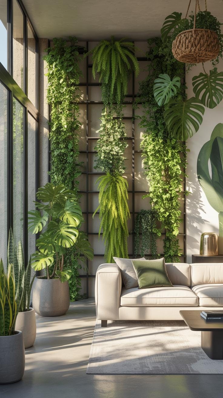 Vertical gardens transform bare walls into living murals, creating immersive botanical narratives that breathe life into your living room. By layering plants of varying heights, textures, and foliage colors, you construct a three-dimensional story that evolves seasonally. This approach to narrative plant decor draws inspiration from the biophilic design movement, which recognizes our innate connection to natural environments. Living walls become focal points that anchor a room’s aesthetic while telling a cohesive ecological story through carefully selected specimens.
