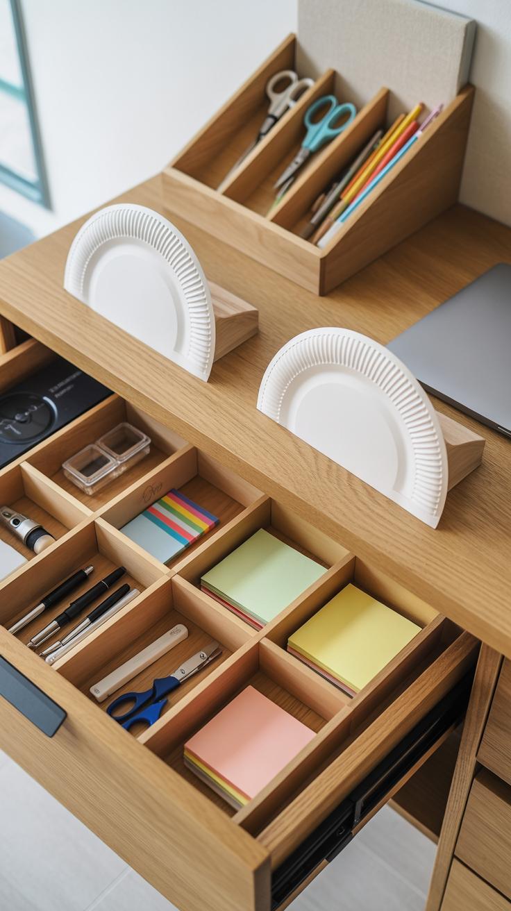 When it comes to organizing pens, notes, and paper clips, paper plates can surprisingly step up as a neat desk organizer. Start by thinking about what you actually use every day. Maybe you need a spot for a few pens, a place for sticky notes, and a tiny compartment for paper clips or binder clips. A single paper plate can handle all that if you divide it thoughtfully.