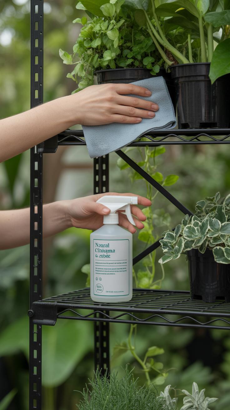 Regular Cleaning of Shelves and Plants