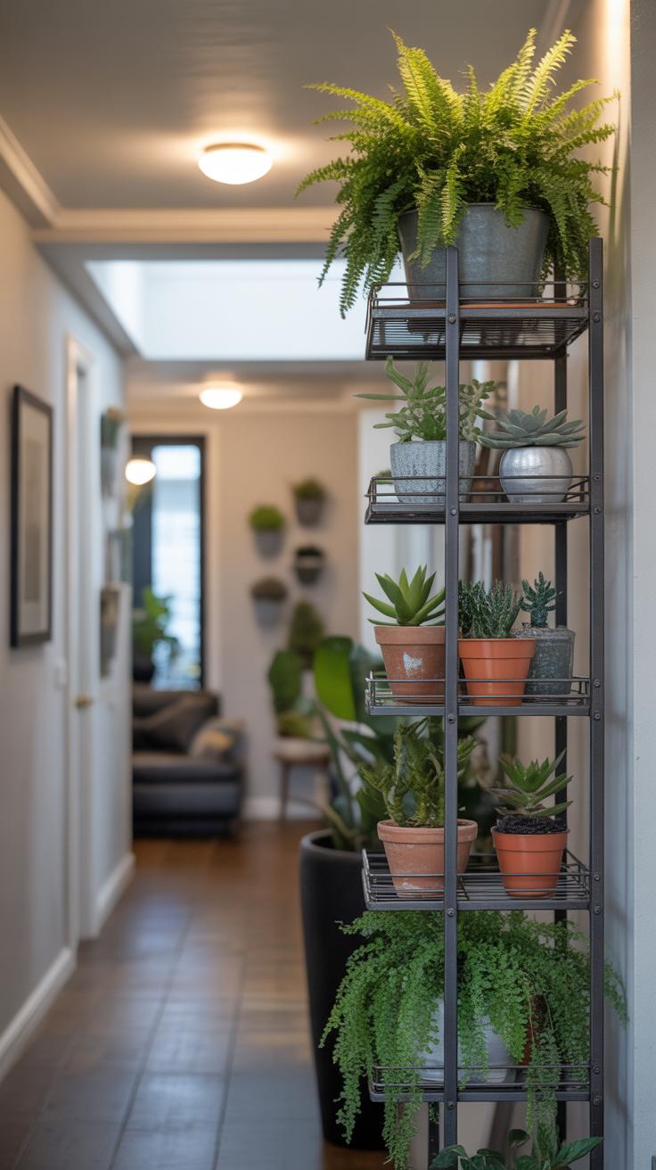Multi-tier plant shelves offer a great way to fit more greenery into your small home without taking up much floor space. I’ve found that stacking plants vertically creates a mini indoor garden that feels fuller and more interesting. More shelves mean you can showcase a variety of plants — from trailing vines to small succulents — all at once.
