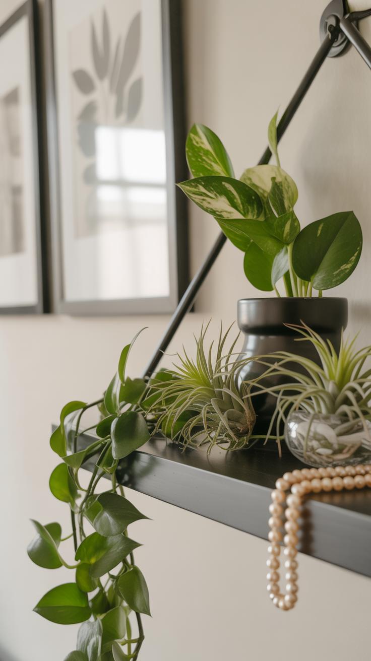 If you’re into making your shelves a bit more dynamic, climbing and trailing plants add depth and movement. Think about pothos or philodendrons—their vines spill gracefully off shelves, making even the smallest space feel lively. Ivy varieties can also work but watch their growth because they can get a bit out of hand.