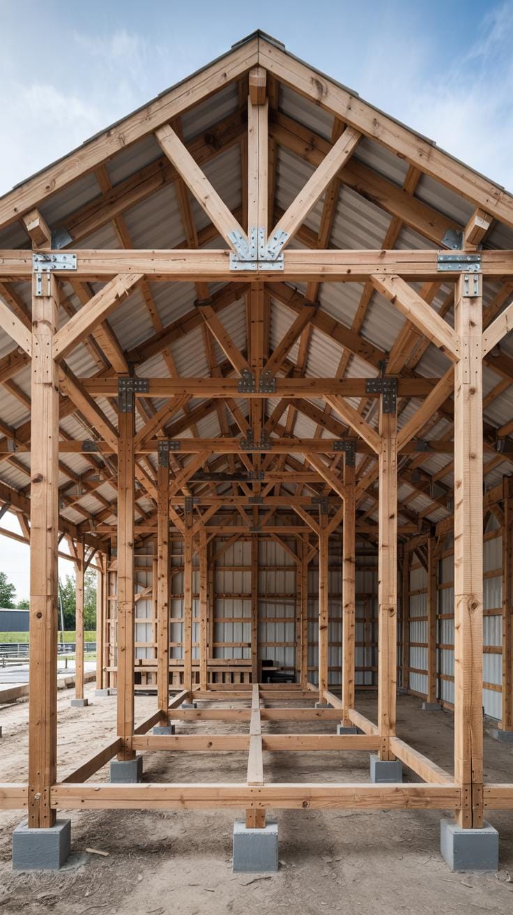 Wood posts serve as the core structure of pole barn homes. They are often pressure-treated for resistance to insects and rot, ensuring long life.