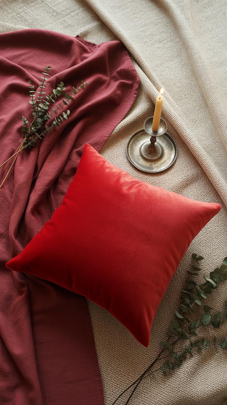 Textiles in red work well because they’re flexible—you’re not locked into a permanent change. A red throw draped over a neutral sofa draws the eye, but it’s easy to remove when you want something different. Pillows come in all shades and patterns; mixing solids with prints adds a bit of personality without feeling over the top.