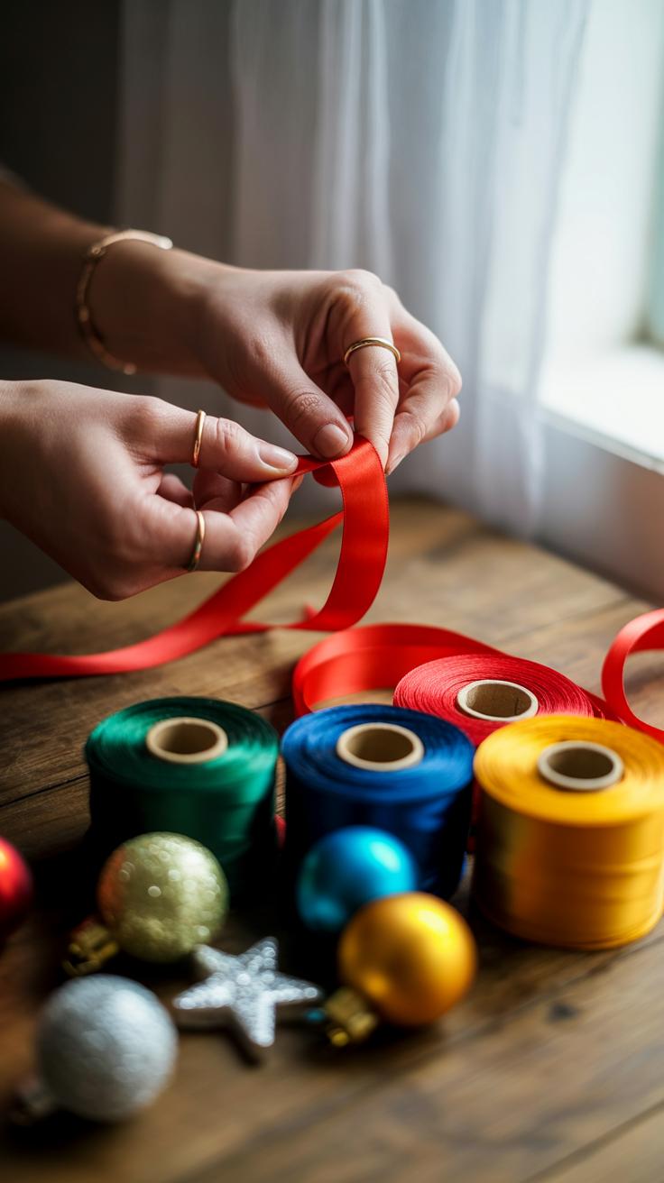 When working with ornaments, ribbon can do more than just fill gaps. You can actually use ribbon to highlight certain ornaments, drawing the eye without stealing the show. One method is to loop ribbon around the ornament hooks or tie small bows just above or below a special bauble. That way, the ribbon acts like a soft frame.