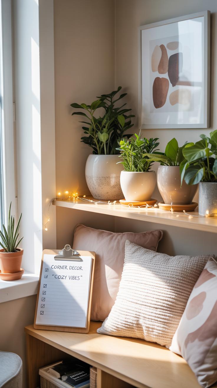 Room corner decor can significantly boost your space’s comfort and style. By carefully picking decor elements and following clear steps, you can easily turn empty corners into cozy highlights of your room. Remember, small changes like adding a lamp, cushions, or wall art can invite warmth and personality into your home.