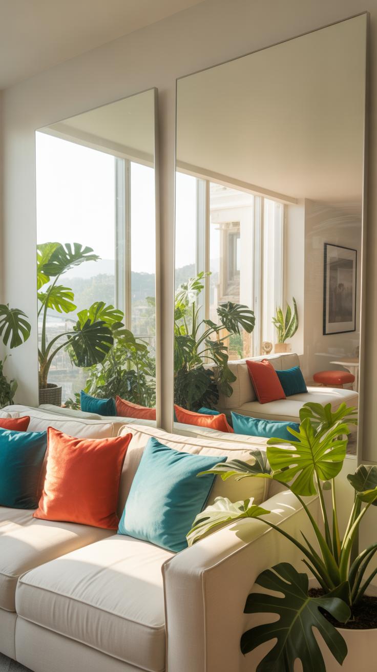 Choosing where to hang mirrors can change everything. Places opposite windows are ideal — here, mirrors catch and scatter natural daylight, magnifying brightness. Even a small mirror on a wall half-lit by sunlight can open your eyes to the space’s potential.