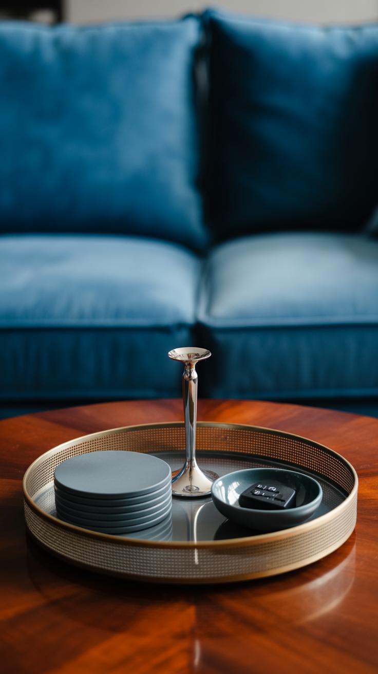 Trays are surprisingly helpful here. By grouping smaller items on a tray, you create a focused area that feels intentional rather than scattered. It helps contain things, making the surface look tidy without feeling sparse. I’ve found that even on smaller tables, a tray can hold candles, a small plant, or a few books neatly. You get style and organization in one.