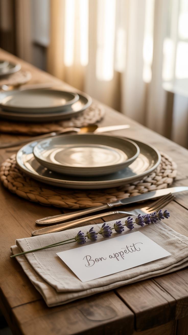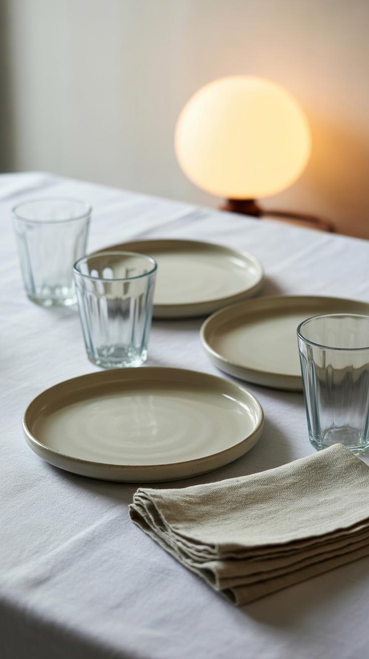 - Fabric elements like linen napkins or placemats bring softness but should be washable to keep things practical.