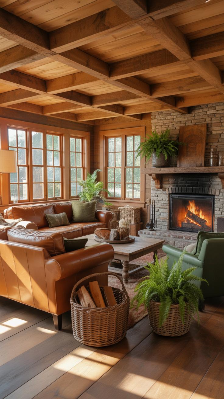 - Stone accents: fireplaces, walls, or flooring with natural, uneven stones.