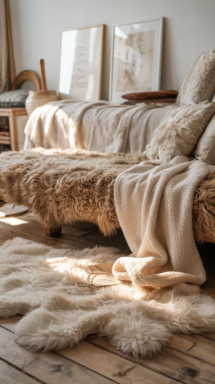 Wool blankets and cushions are staples in Scandinavian homes for a reason. Their soft textures make sofas and chairs more comfortable and welcoming. These textiles don’t just add comfort; they build layers of visual interest.