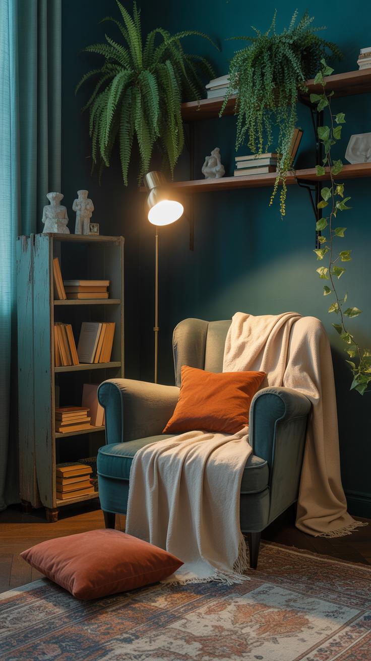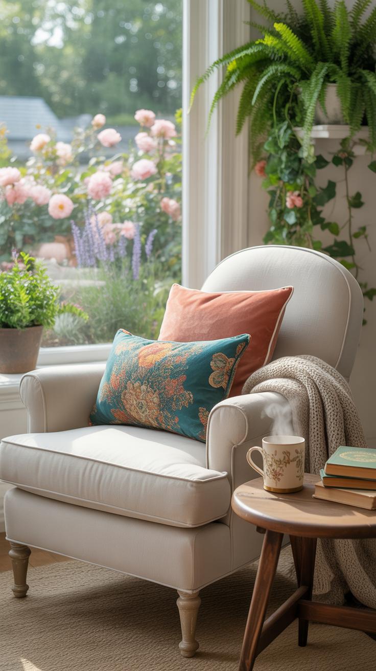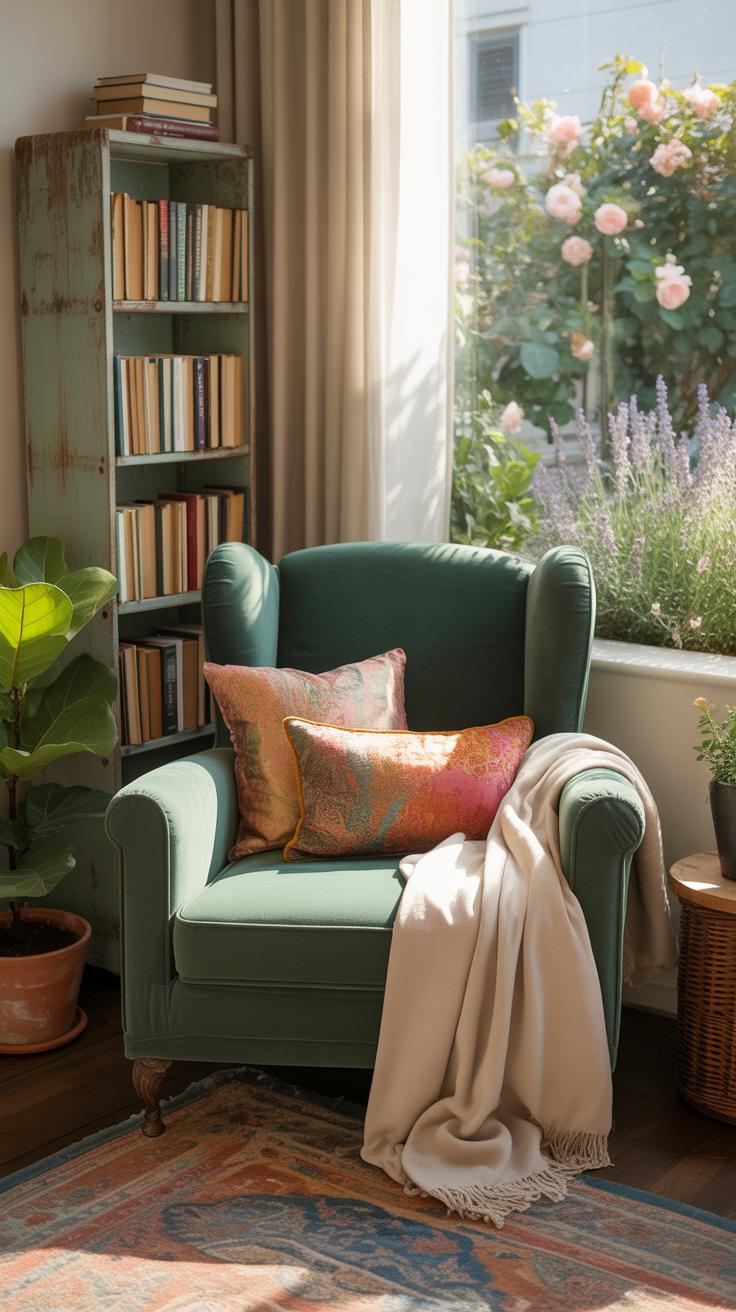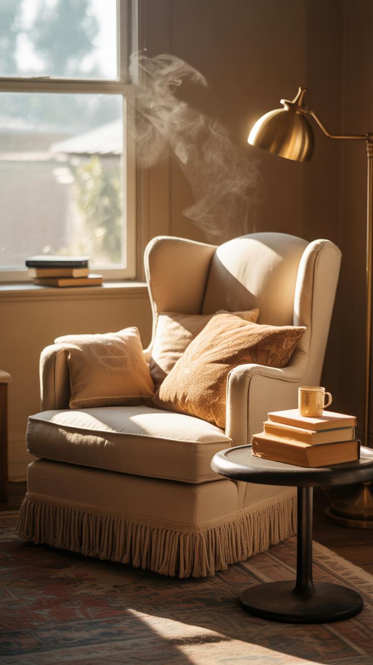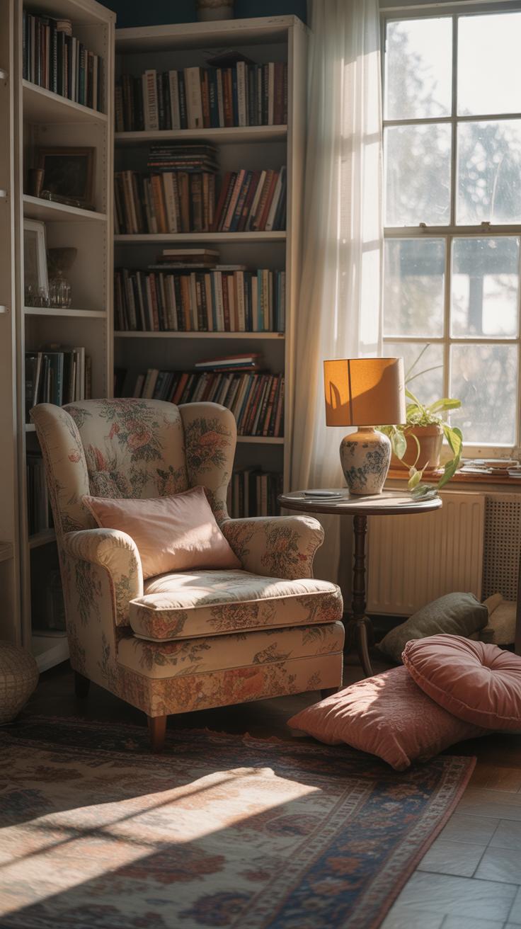 Your furniture choices matter a lot here. Look for a chair that supports your back without being too stiff or too soft. Maybe an ottoman for leg rest and a small side table for your tea or glasses. Shelves or a small bookcase nearby keep your favorite reads within reach.