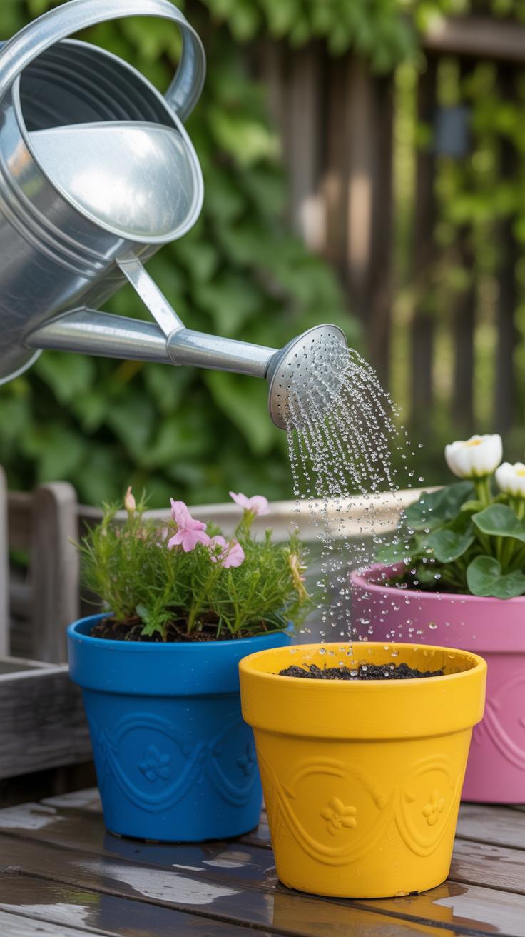 To avoid paint soaking in unevenly on porous pots, apply a coat of primer or a layer of white acrylic paint first. It creates a smoother base and helps your colors pop, which might seem unnecessary if you’re going for a rustic look—but it saves frustration in the long run.