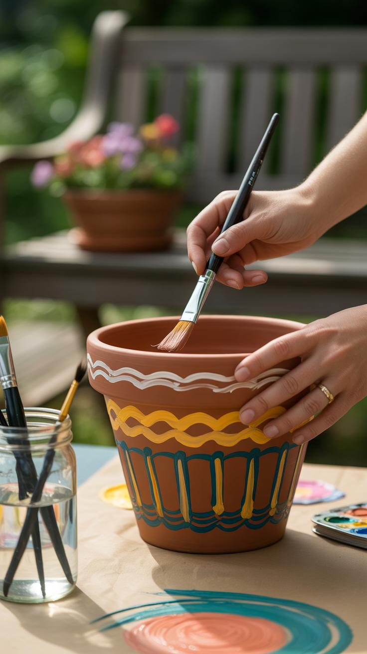 Now comes the fun part—painting! You don’t need to be an artist to create eye-catching pots. Some simple, reliable styles include: