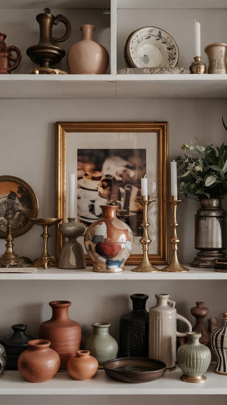 Antique knickknacks like glass bottles, small trinket boxes, or ceramic dishes create visual interest without demanding much space. Each piece should add to the story of your home rather than compete for attention.